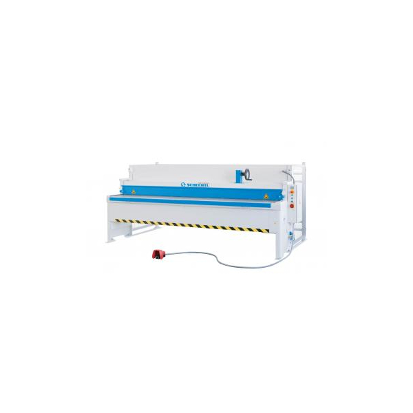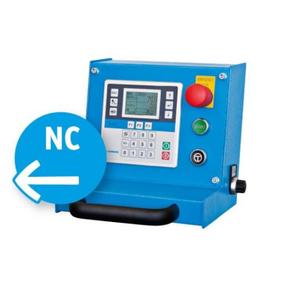 Varianta řízení NC znamená, že nůžky s NC řídicím systémem jsou plynule ovládány zepředu – stohování stříhaného materiálu na přední stranu stroje. Elektrický zadní doraz 0-750 mm.