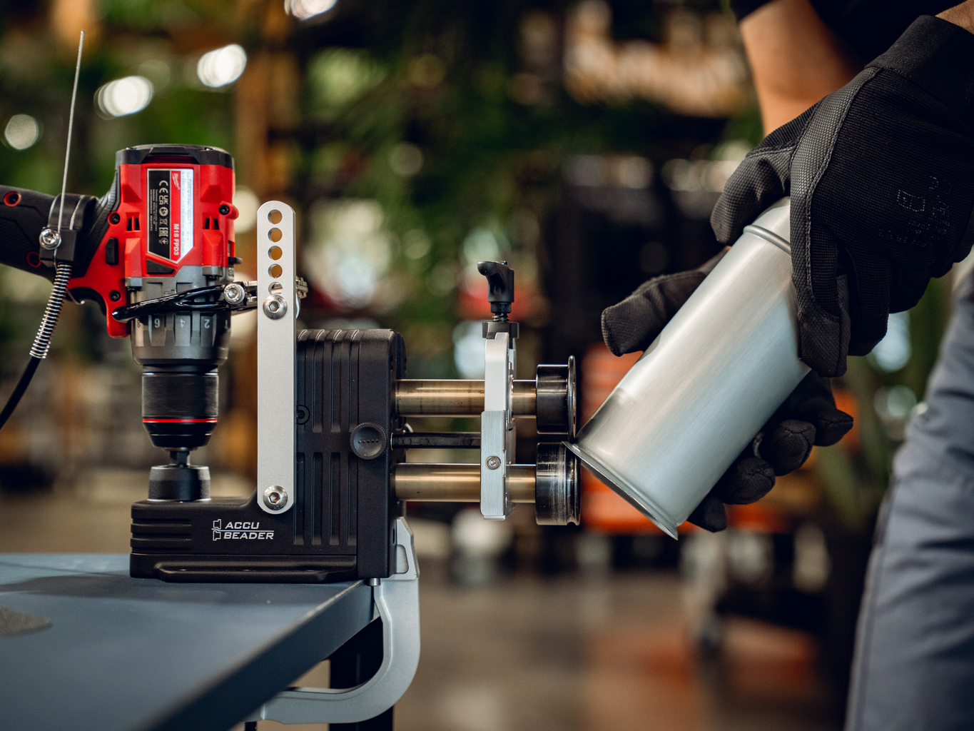 ACCUBEADER je přenosný akumulátorový signovací stroj na tvarování a lemování kovových trubek pro svody a také plechů. Jde o lehký, rychlý a velmi efektivní dopl-něk k naší nabídce aku nástrojů.